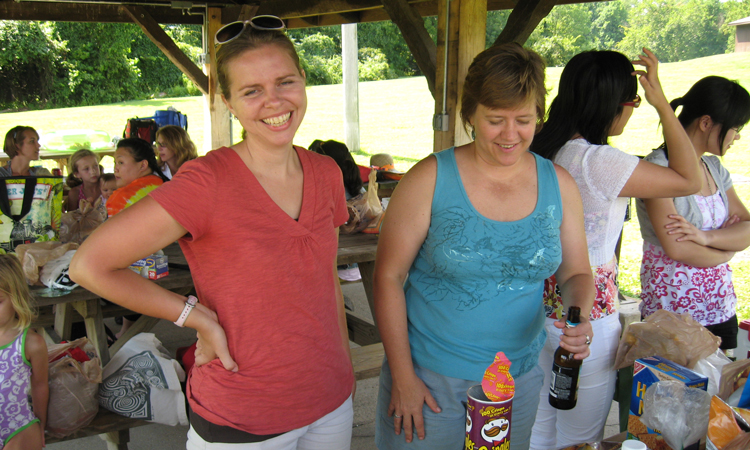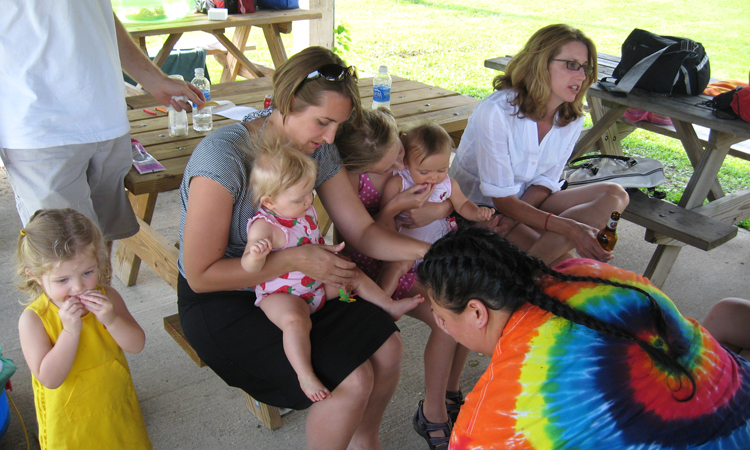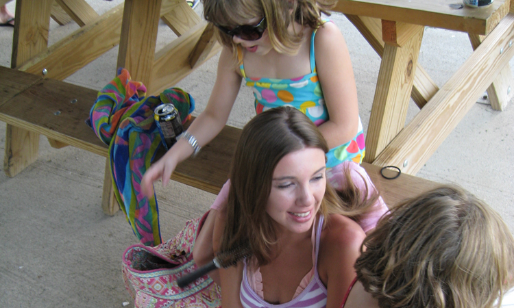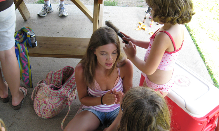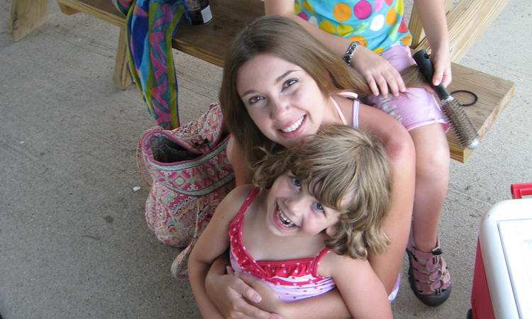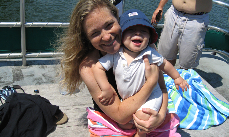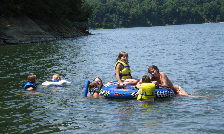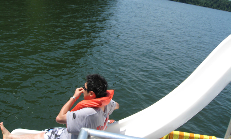 Child about to slide down into the lake