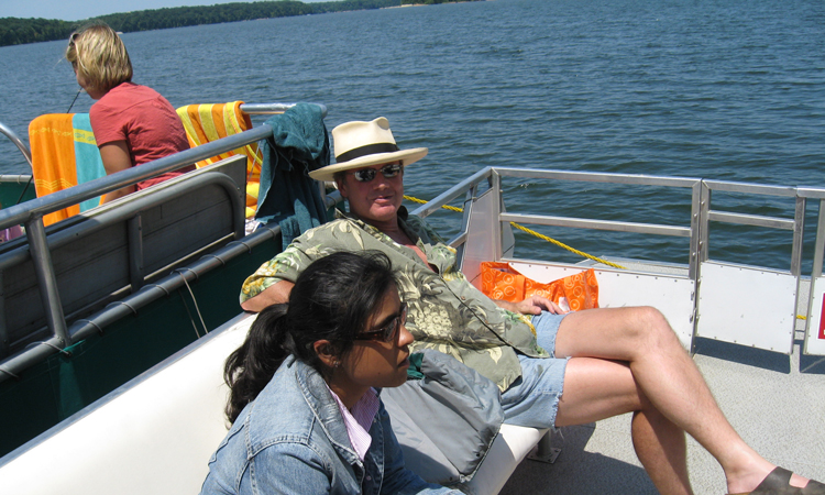 Group members sitting on the boat