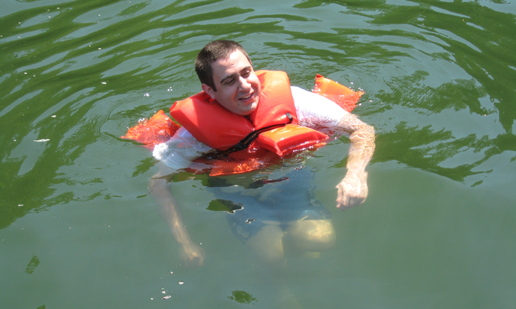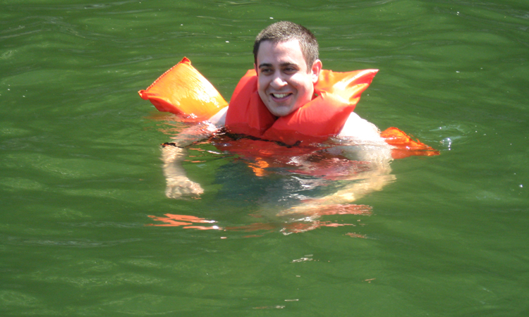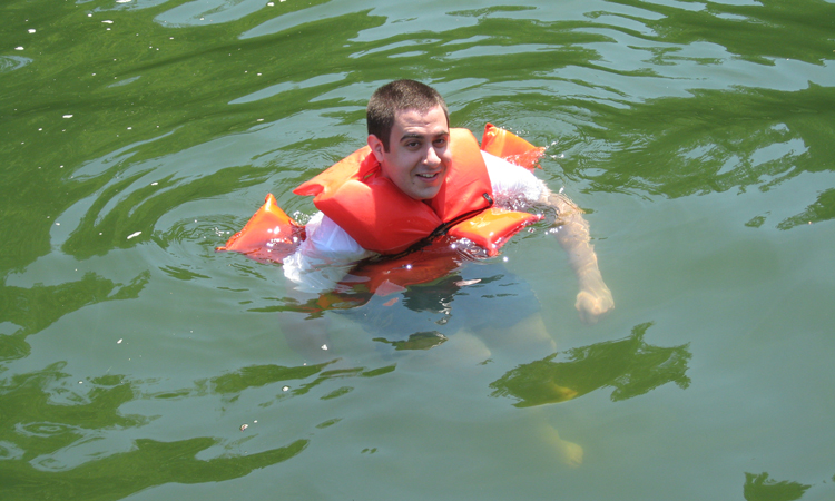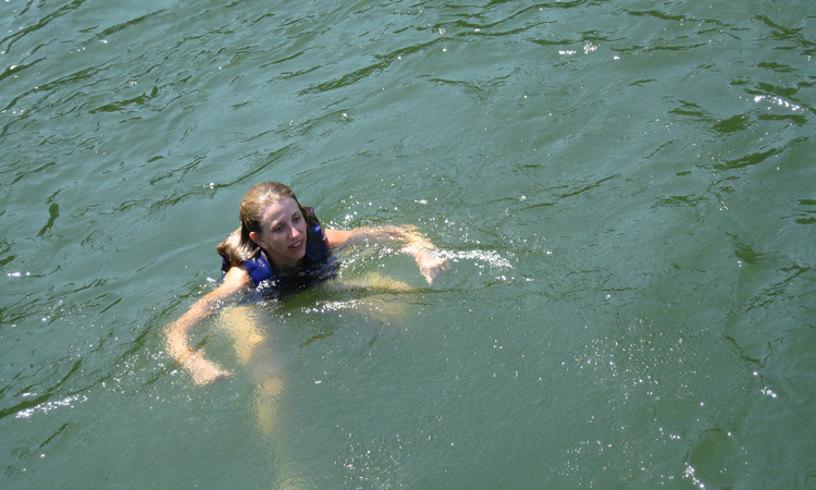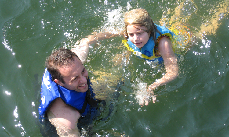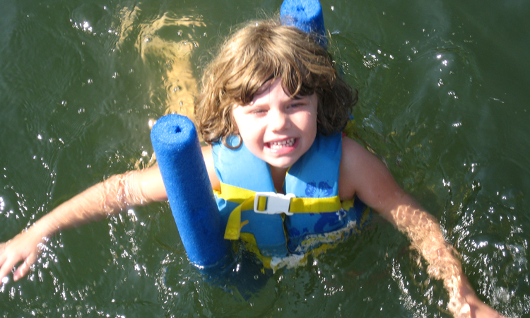 Child swimming with a life vest on