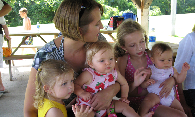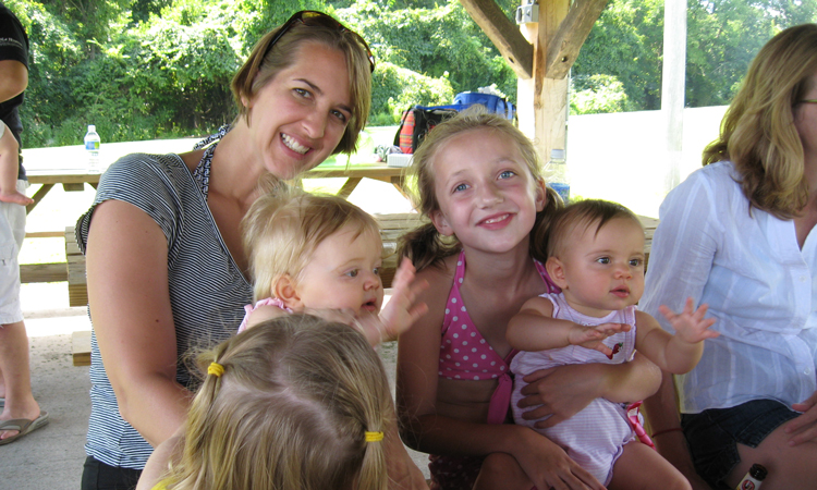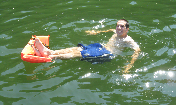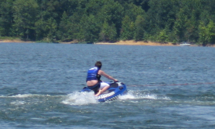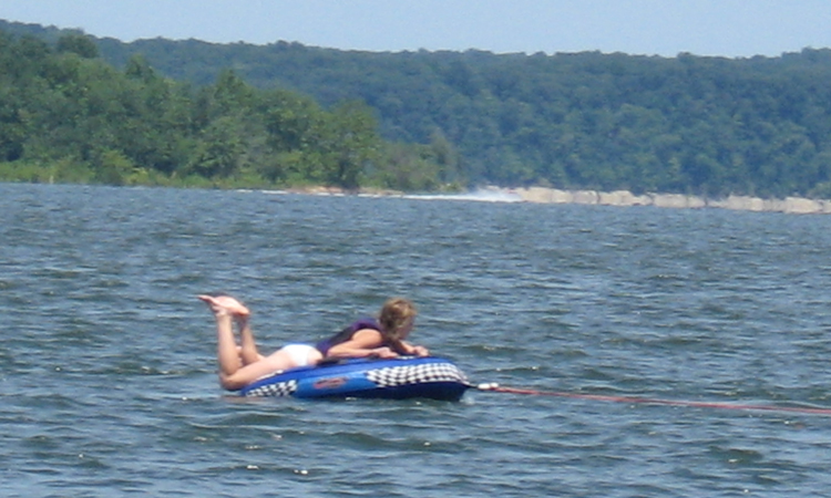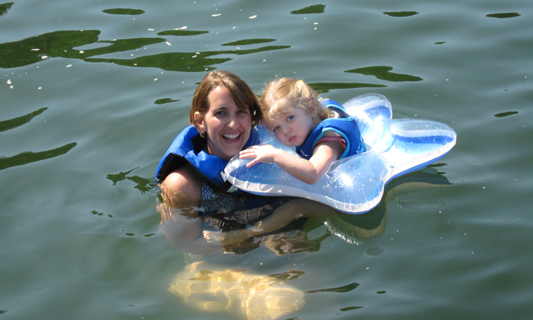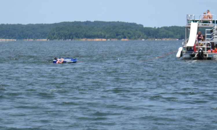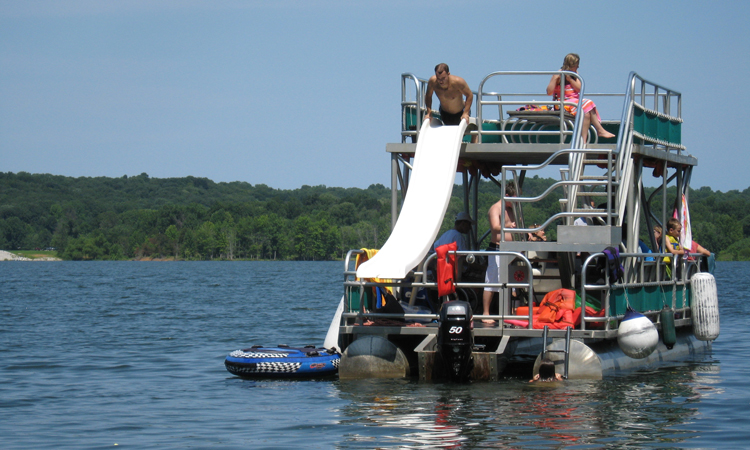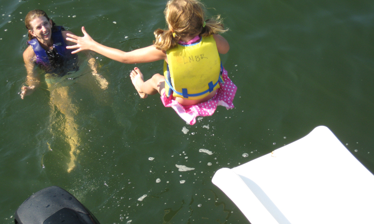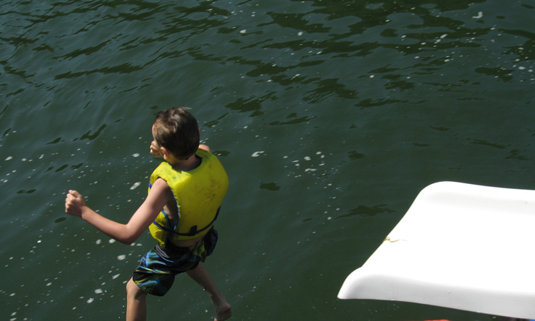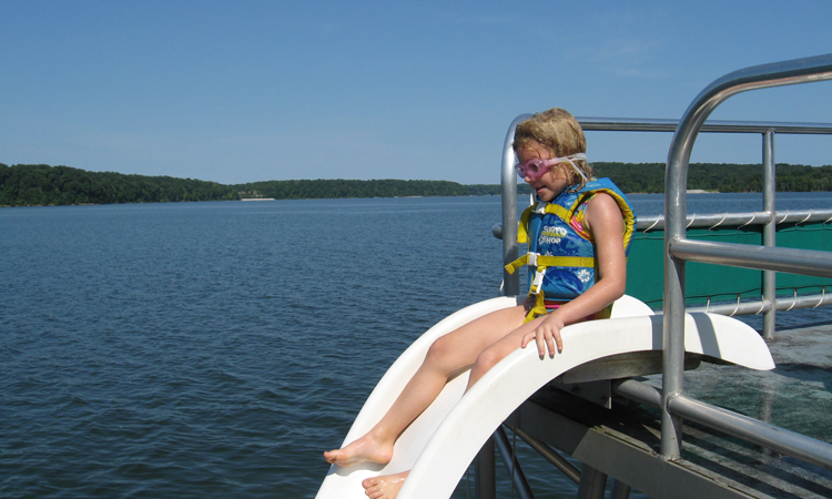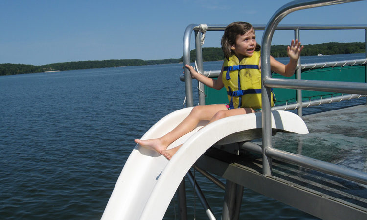 Child about to slide down into the lake