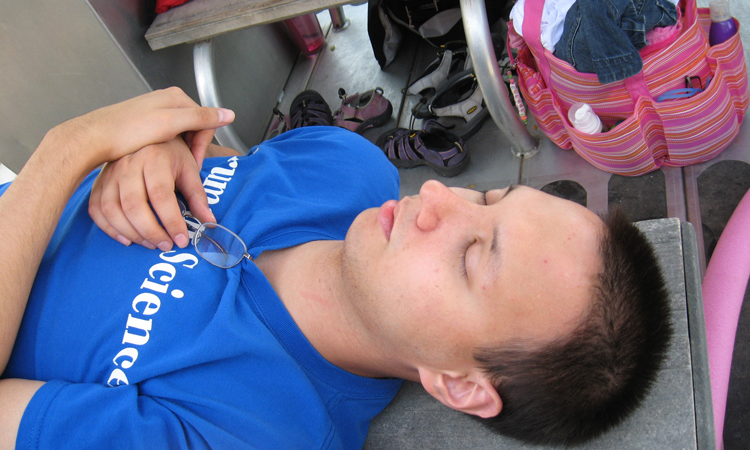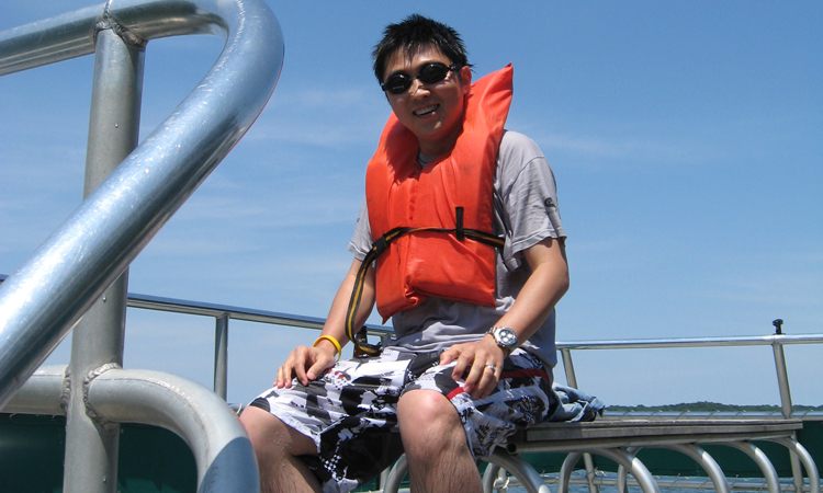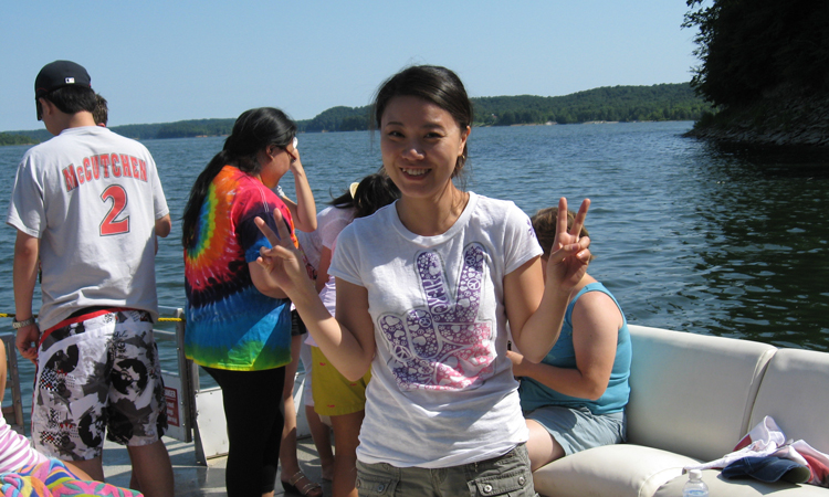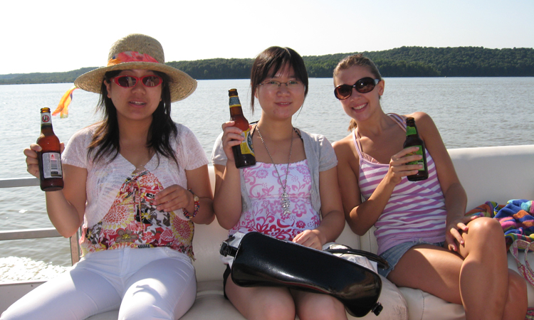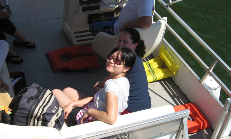 Group members sitting on the boat
